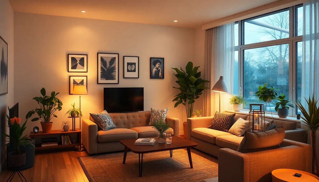 Smart lighting solutions enable users to manage brightness and color via smartphone applications or voice assistants. These systems offer programmable settings for different occasions, from movie nights to energetic gatherings. Users can schedule lighting adjustments, promoting convenience and energy savings. Many smart bulbs now feature customizable colors, further enhancing ambiance. Integration with other smart home devices allows users to create cohesive environments. Research indicates that smart lighting positively influences well-being, providing users with tailored illumination that suits their lifestyle preferences.